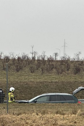 Peugeot na skraju rowu w Parzewie, kierowca w środku