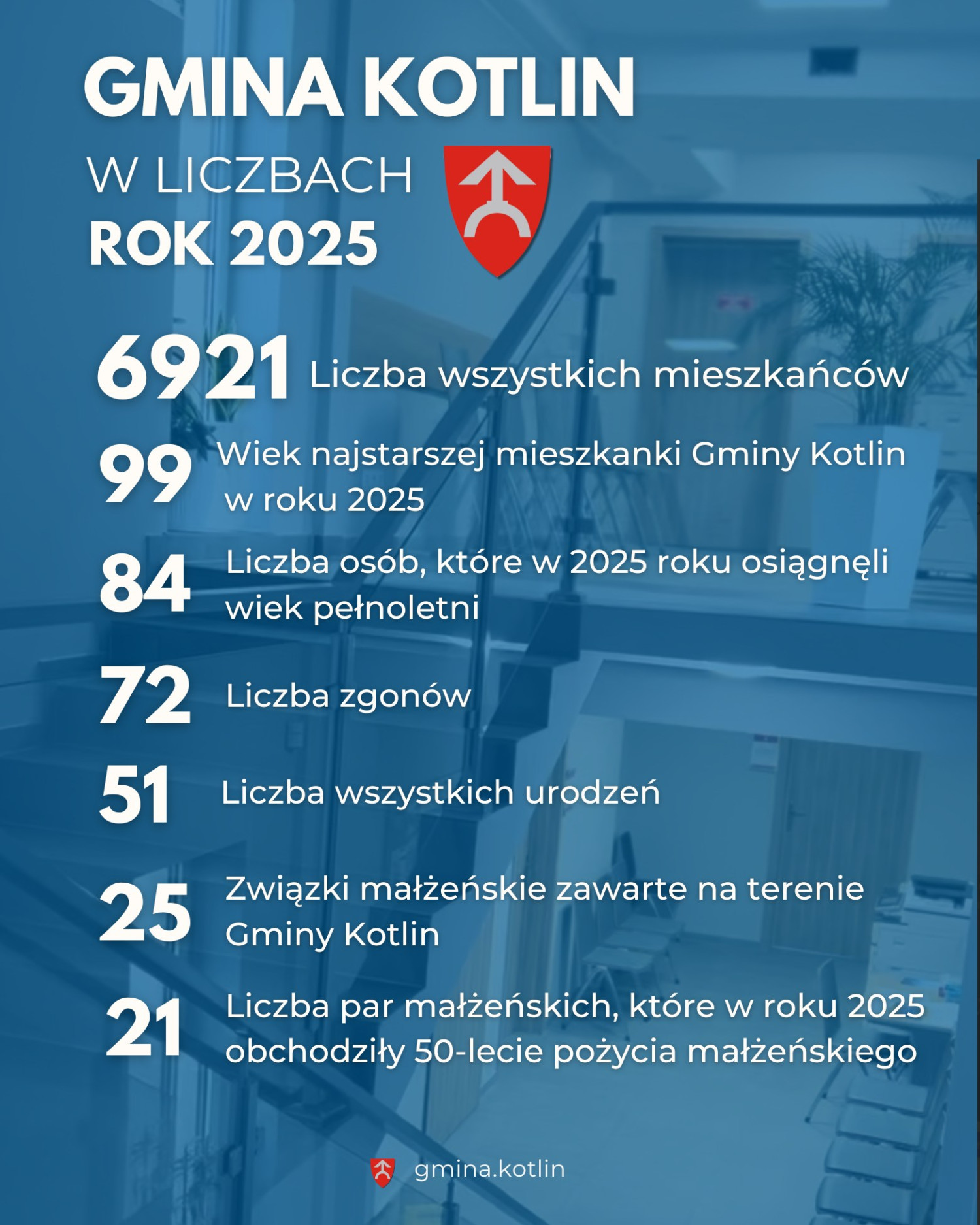 Miniony rok był także czasem ważnych wydarzeń rodzinnych. Na terenie gminy Kotlin zawarto 25 związków małżeńskich. Szczególnym powodem do dumy i wzruszeń były jubileusze długoletnich małżeństw – aż 21 par świętowało w 2025 roku 50-lecie pożycia małżeńskiego, potwierdzając siłę więzi rodzinnych i tradycyjnych wartości obecnych w lokalnej społeczności. Urząd Stanu Cywilnego w Kotlinie odnotował też 9 rozwodów.