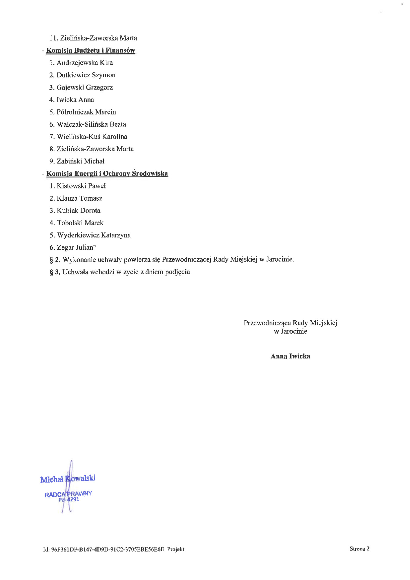 Po przerwie radny Michał Żabiński zrezygnował z zasiadania w Komisji Rewizyjnej i chce zasiadać w Komisji Skarg, Wniosków i Petycji. Radny Jerzy Walczak rezygnuje z zasiadania w Komisji Rewizyjnej.