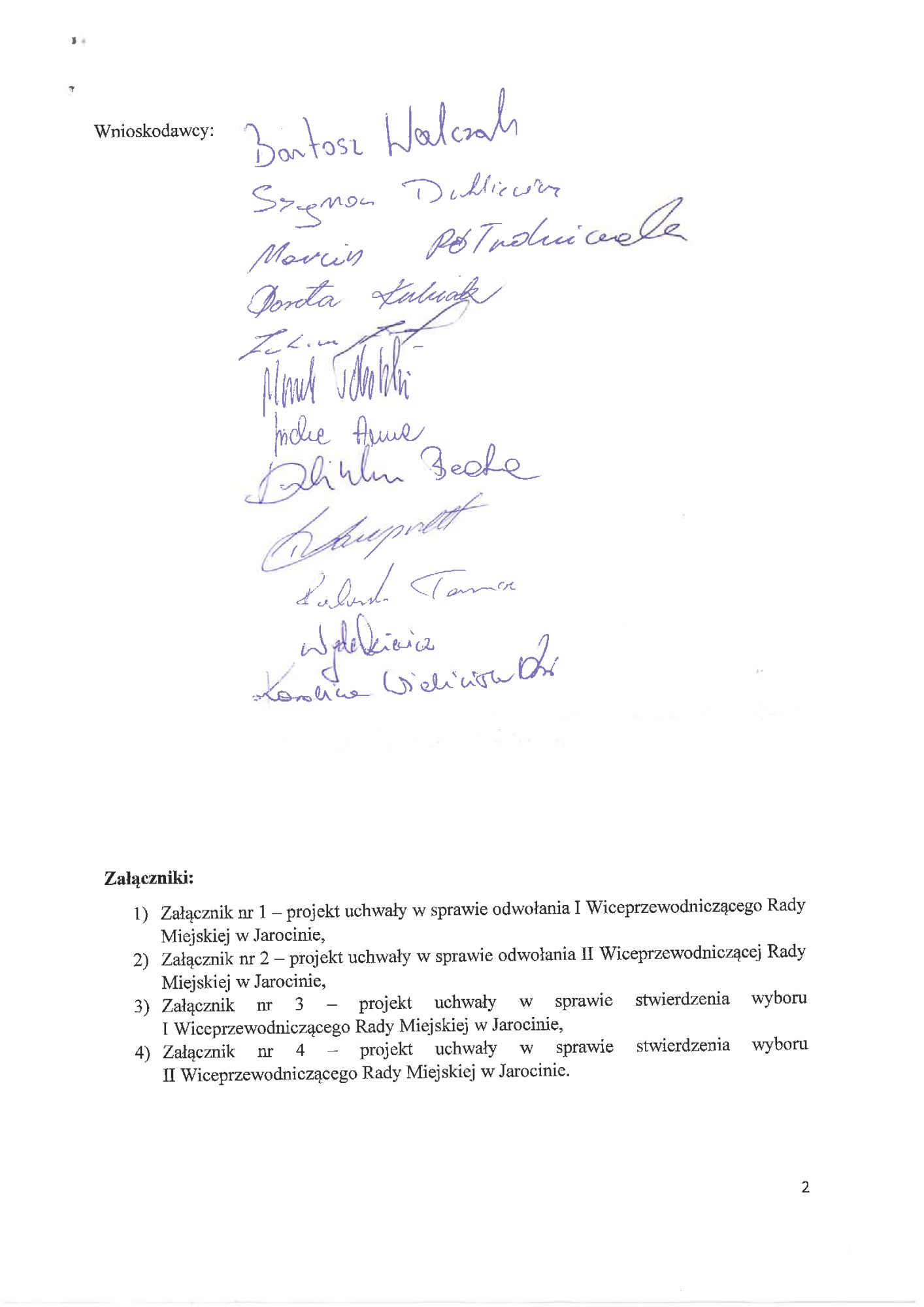 Na I wiceprzewodniczącą zgłoszona została Beata Walczak-Silińska. Wyraziła zgodę. Tak samo radni. Na II wiceprzewodniczącego zgłoszony został Marcin Półrolniczak. Wyraził zgodę. Tak samo radni. Kolejna przerwa w obradach.
