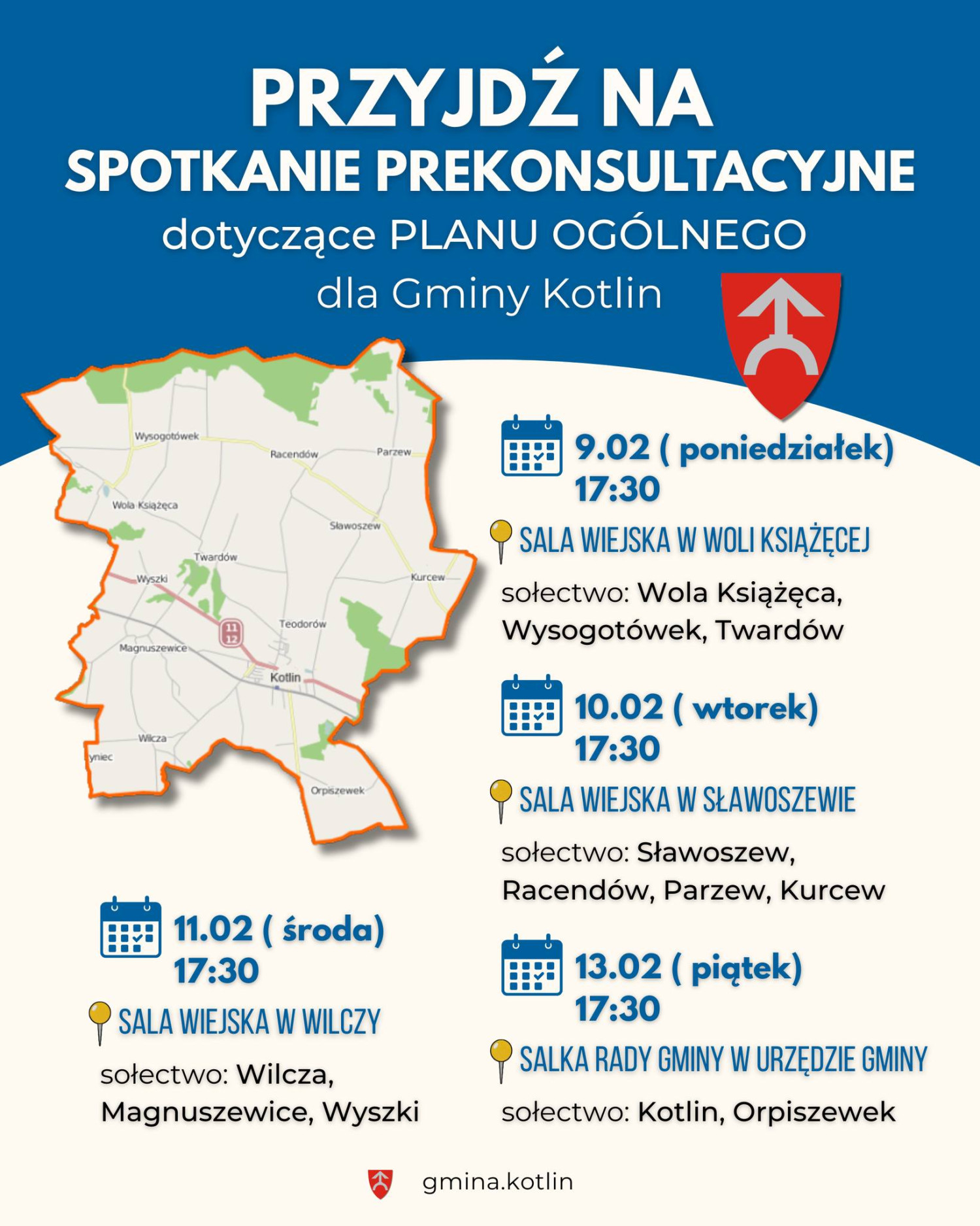 Szczegóły dotyczące planu ogólnego oraz spotkań dostępne są na stronie internetowej gmina.kotlin.pl.