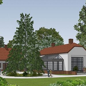 Realizacja nowego założenia przewiduje konieczne prace rozbiórkowe, adaptację i przebudowę budynku, który stanie się restauracją z dobudowaną wielofunkcyjną salą o oranżeryjnej formie. Będzie to także przestrzeń do realizacji wszelkich działań kulturalnych.