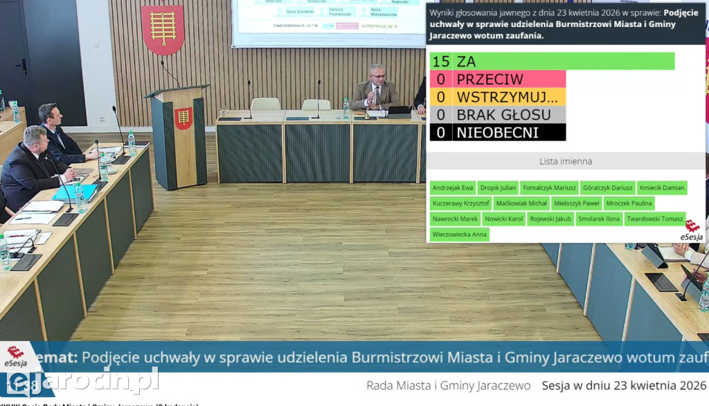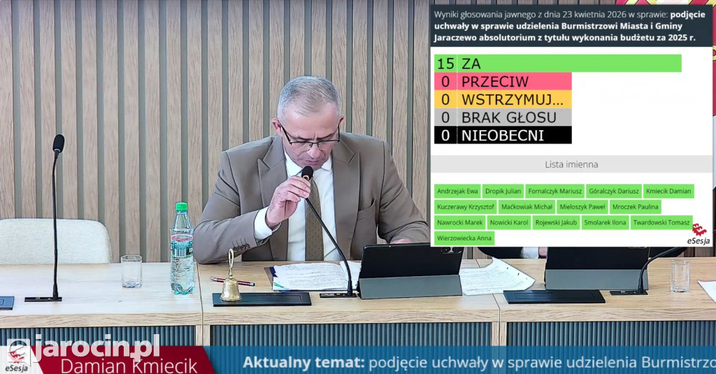 Jednym z kluczowych punktów obrad jest przedstawienie „Raportu o stanie Gminy Jaraczewo za 2025 rok”, nad którym przeprowadzona zostanie debata. Następnie radni podejmą uchwałę w sprawie udzielenia Burmistrzowi wotum zaufania.