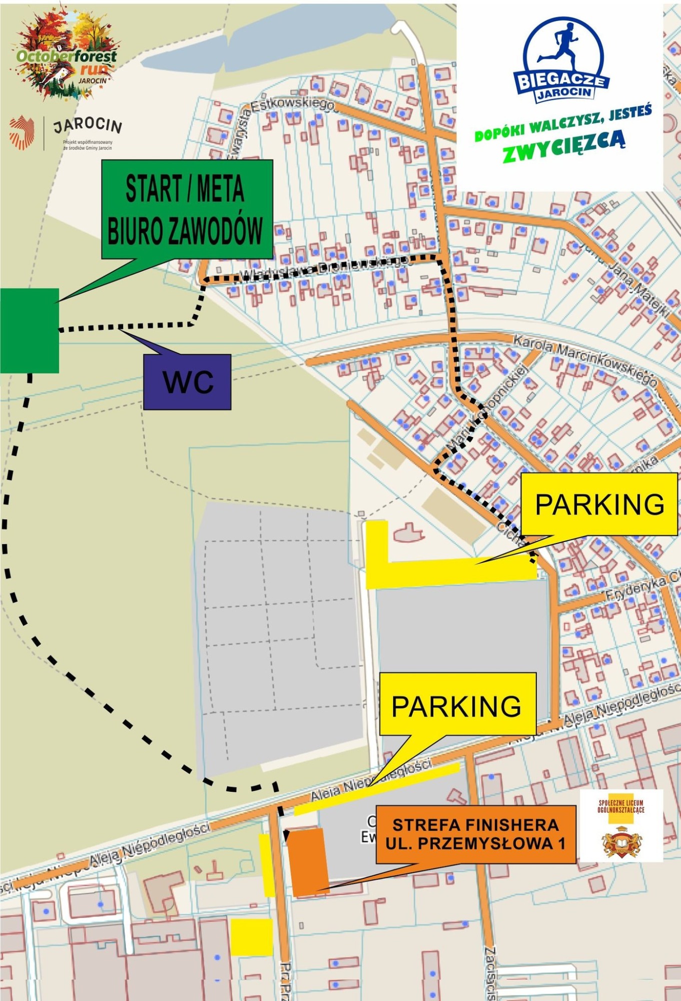 Start i meta: Las w Jarocinie, skrzyżowanie ulic Estkowskiego i Broniewskiego.