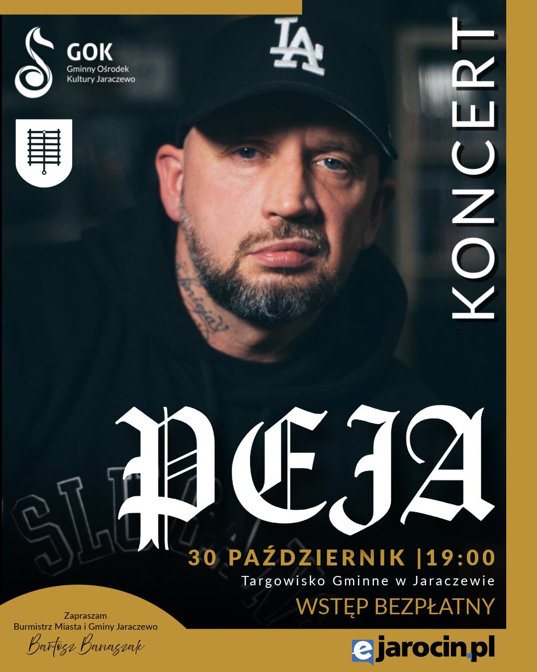 Jaraczewo stanie się prawdziwym centrum hip-hopowej kultury. Już 30 października na Targowisku Gminnym o godzinie 19:00 wystąpi jedna z ikon polskiego rapu – Peja. Artysta, który od lat buduje scenę muzyczną w kraju i zdobywa serca fanów wyjątkową autentycznością i energetycznymi występami.