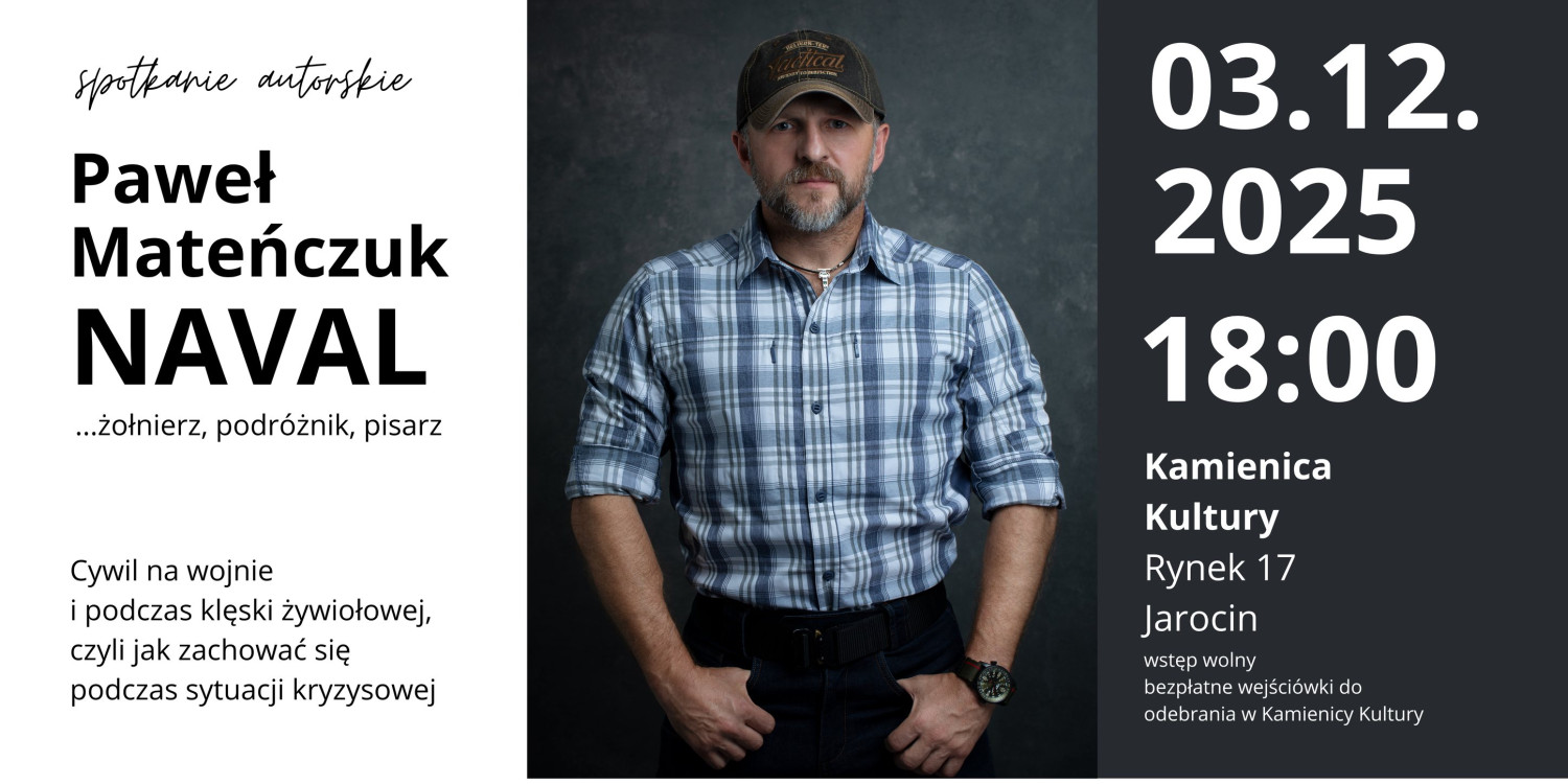 Już 3 grudnia o godzinie 18:00 w Kamienicy Kultury odbędzie się wyjątkowe spotkanie z byłym żołnierzem Jednostki Wojskowej GROM, podróżnikiem i autorem bestsellerowych książek o tematyce survivalowej. Wydarzenie organizuje Biblioteka Publiczna Miasta i Gminy w Jarocinie, która zaprasza wszystkich mieszkańców zainteresowanych bezpieczeństwem, służbą wojskową i praktycznymi wskazówkami dotyczącymi radzenia sobie w sytuacjach zagrożenia.