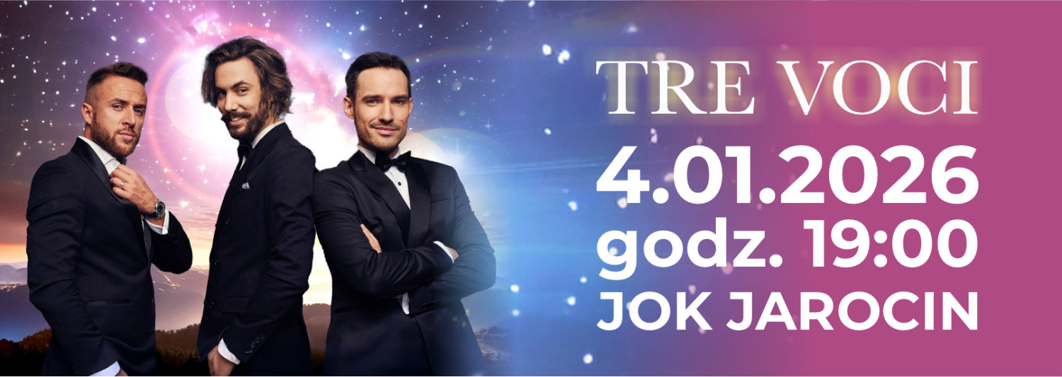 Z kolei 4 stycznia 2026 roku o 19:00 w JOK Jarocin wystąpią tenorzy nowej generacji – Tre Voci, prezentując program pełen muzycznych emocji i miłosnych uniesień. Szczegóły tutaj.