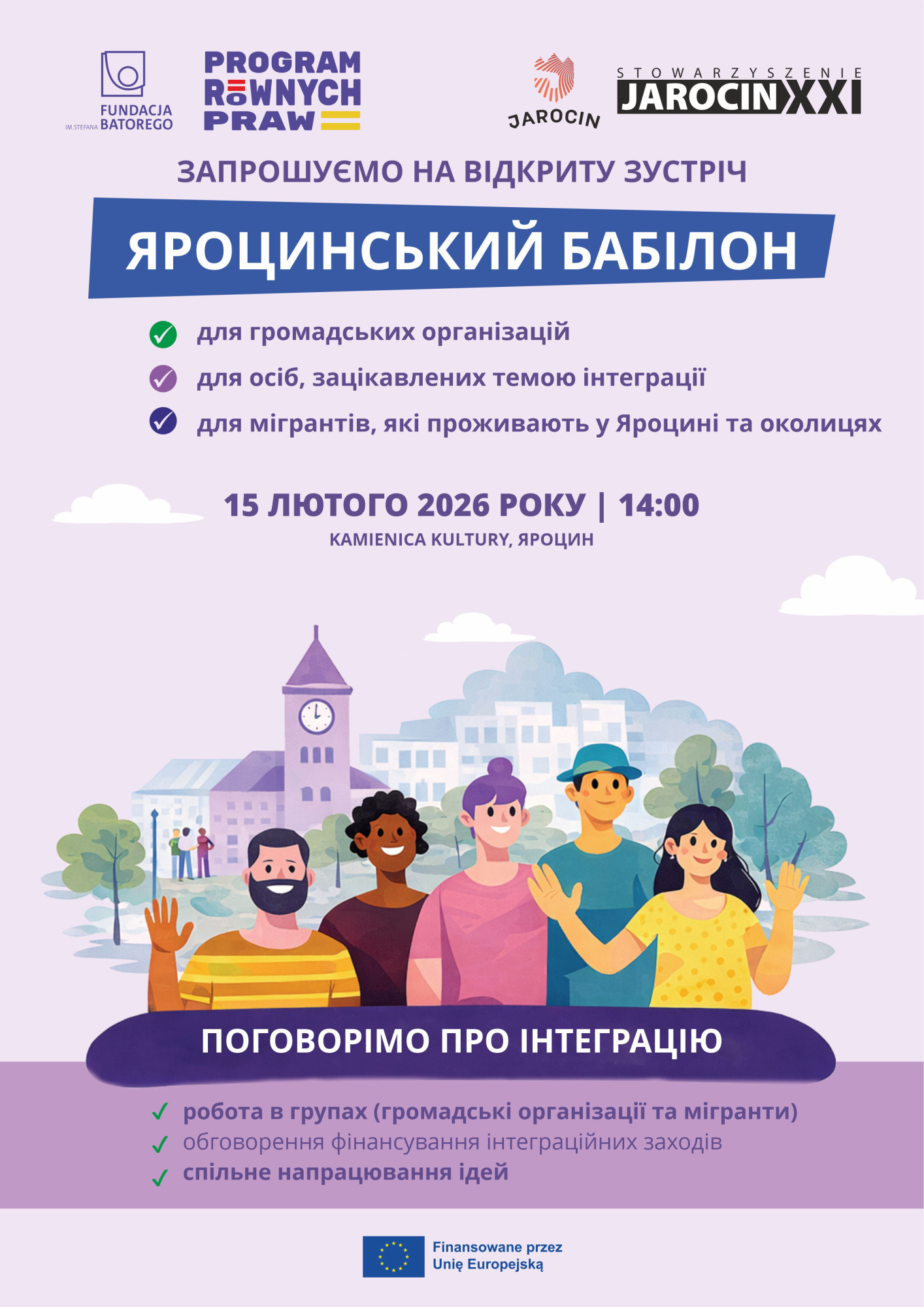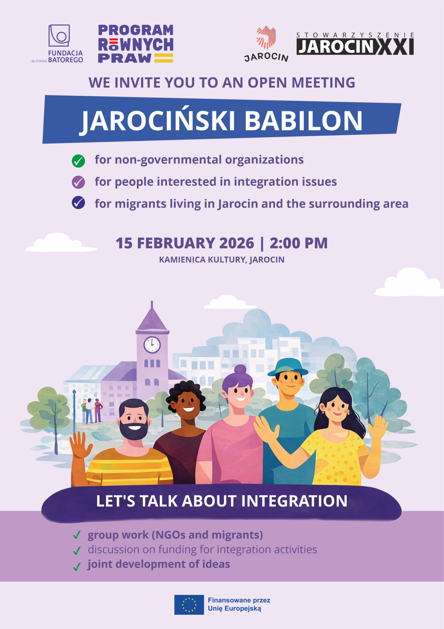 Wydarzenie jest otwarte, wstęp wolny, a jego organizację wspiera Gmina Jarocin oraz Biblioteka Publiczna Miasta i Gminy Jarocin. Projekt współfinansowany jest przez Unię Europejską w ramach Programu Równych Praw (CERV), realizowanego przez Fundację im. Stefana Batorego.