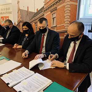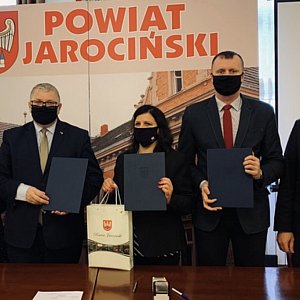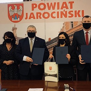 Uroczyste popisanie umów o dofinansowanie odbyło się w sali sesyjnej Starostwa Powiatowego w Jarocinie. Wzięli w nim udział: Krzysztof Grabowski, wicemarszałek województwa wielkopolskiego, Jan Grzesiek, radny sejmiku województwa wielkopolskiego, Lidia Czechak, starosta powiatu jarocińskiego, Katarzyna Szymkowiak, wicestarosta, Mariusz Stolecki, członek zarządu powiatu odpowiedzialny za oświatę oraz Jacek Jędrzejak, skarbnik samorządu.