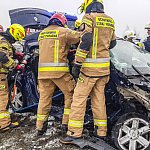 Trzy osoby zostały poszkodowane w wypadku na drodze krajowej nr 15 w Wałkowie w gminie Koźmin Wlkp. Wzięły w nim udział trzy samochody, którymi podróżowało pięć osób. W tym dwuletnie dziecko.