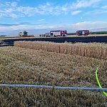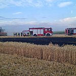 Sześć zastępów straży pożarnej gasiło pożar zboża na pniu i ścierniska. W akcji gaśniczej towarzyszyli im policjanci.