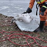 Jednego łabędzia, ze stada znalezionego, na Zalewie w Roszkowie udało się uratować strażakom z OSP Nosków. Niestety, młody ptak nie przeżył.