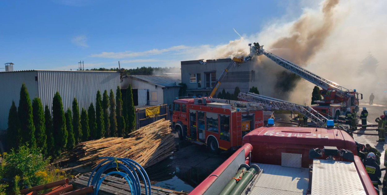 Od wczesnych godzin porannych strażacy walczą z ogromnym pożarem tartaku w miejscowości Szczodrzejewo (gmina Miłosław). Ogień pojawił się w niedzielę, 25 sierpnia, tuż po godzinie 4:00 i błyskawicznie rozprzestrzenił się na część produkcyjną oraz biurową zakładu.