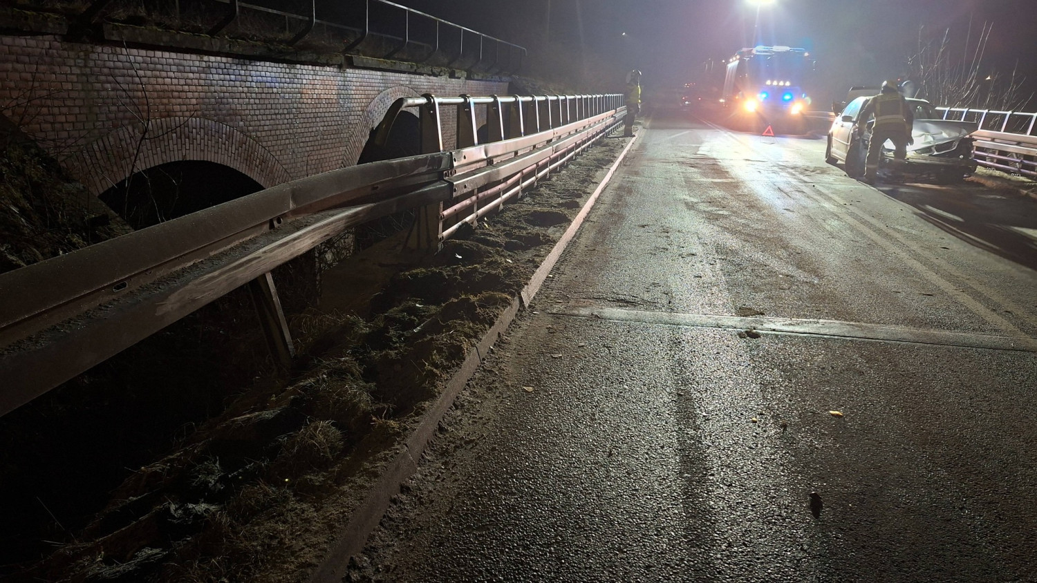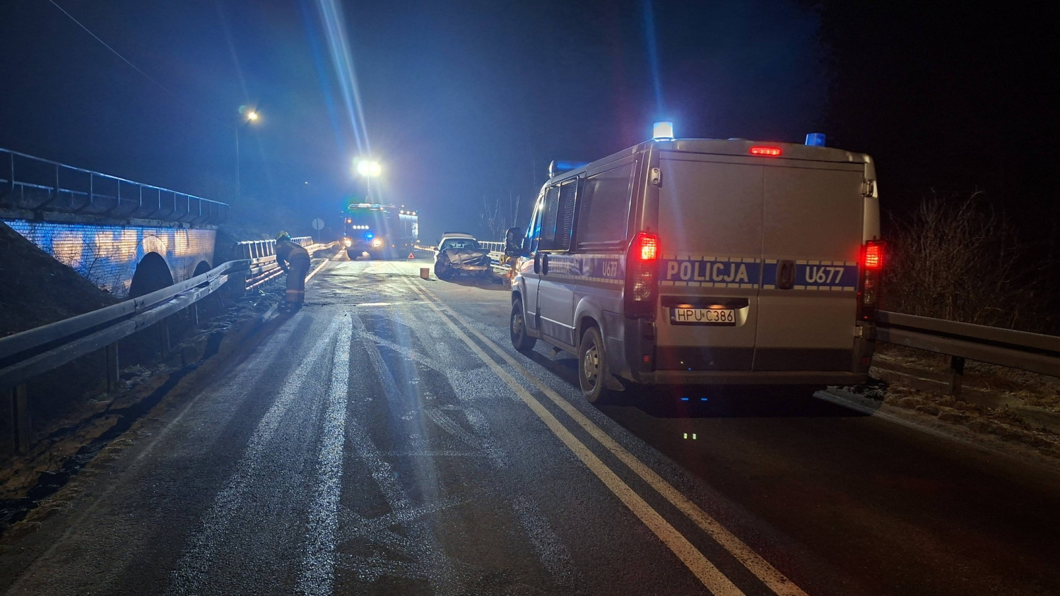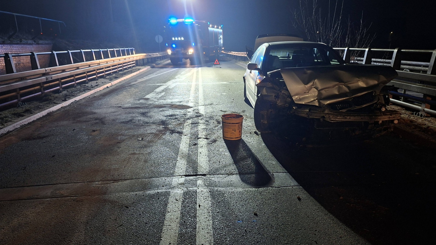 Dziś, 27 lutego, kilka minut przed godziną piątą rano doszło do groźnie wyglądającego zdarzenia drogowego w miejscowości Fabianów, w rejonie dawnego mostu kolejowego kolei wąskotorowej.