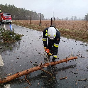 Zarówno w sobotę wieczorem jak i dzisiaj od samego rana strażacy działający na terenie powiatu jarocińskiego musieli się uporać z: zerwanym dachem we Lgowie, powalonymi drzewami na ścieżce rowerowej w Witaszyczkach, porwanym przez wiatr workiem big bag i zawieszonym o linki energetyczne w miejscowości Lisew, powalonym drzewem w Ludwinowie oraz na drodze powiatowej Żerków-Grab, zerwanymi panelami fotowoltaicznymi w Noskowie, powalonymi drzewami, które leżały na drodze między Tarcami a Kadziakiem oraz tymi, które zostały powalone w miejscowościach: Parzew, Miniszew, Sierszew czy Dobieszczyzna.