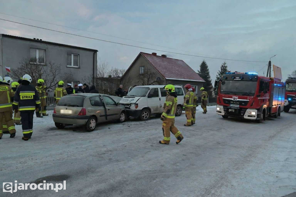 O 14:38 strażacy zostali wezwani do Ruska w gminie Jaraczewo. Tam, na skrzyżowaniu, doszło do kolizji drogowej. Zderzyły się bus oraz samochód osobowy.