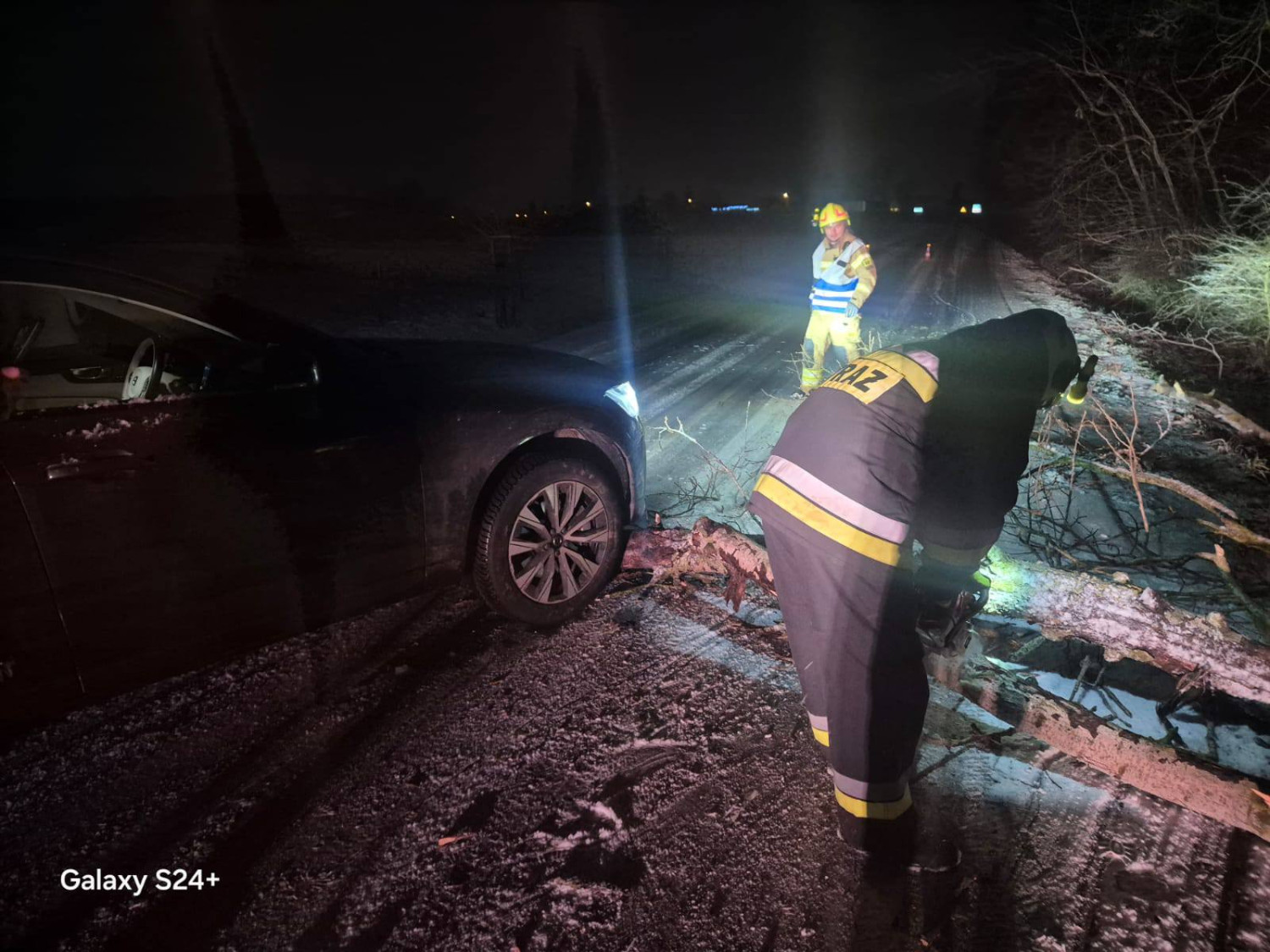 Do zdarzenia doszło w piątek, 2 stycznia 2026 roku, o godzinie 22:40. Było to pierwsze w tym roku wezwanie dla druhów z Ochotniczej Straży Pożarnej w Szypłowie. Zgłoszenie dotyczyło drzewa, które, pod wpływem ekstremalnych warunków pogodowych, runęło na jezdnię drogi powiatowej Szypłów–Mieszków.