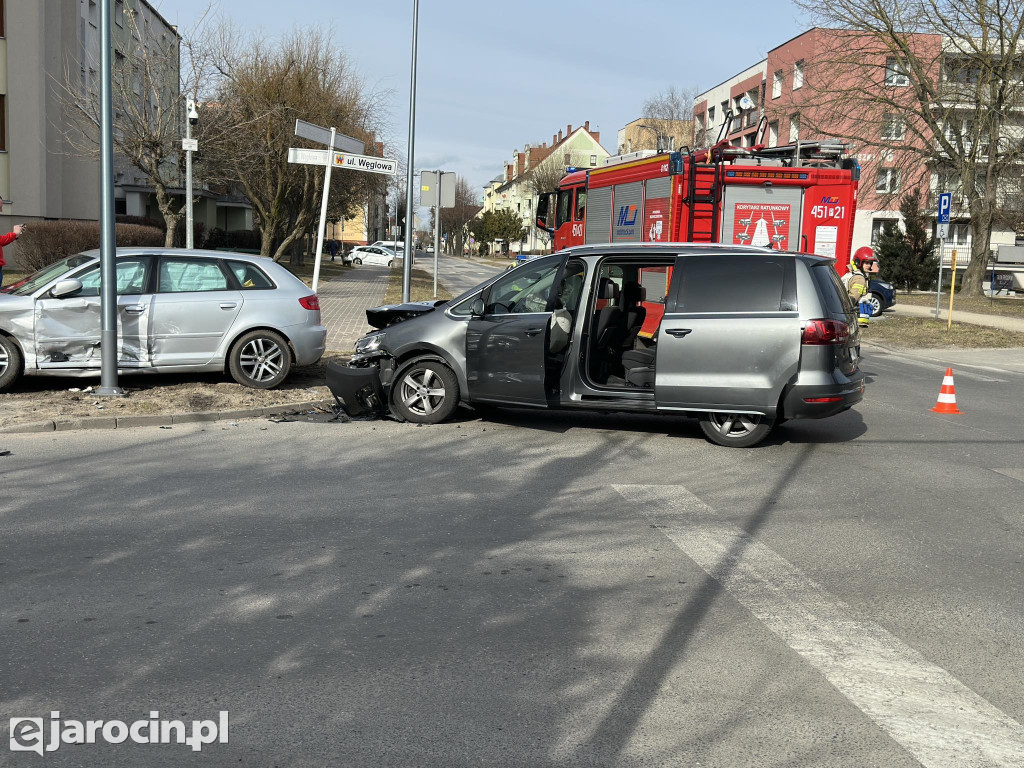 Jak informują strażacy, o godzinie 12:30 wpłynęło do nich zgłoszenie dotyczące zderzenia dwóch samochodów osobowych na skrzyżowaniu ulic Węglowej i Szubianki w Jarocinie.