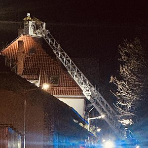 Mimo że strażacy do ugaszenia pożaru używają drabiny, nie ma utrudnień w ruchu na ul. Nowej, ponieważ działania prowadzone są z podwórza budynku. Nie ma także poszkodowanych.