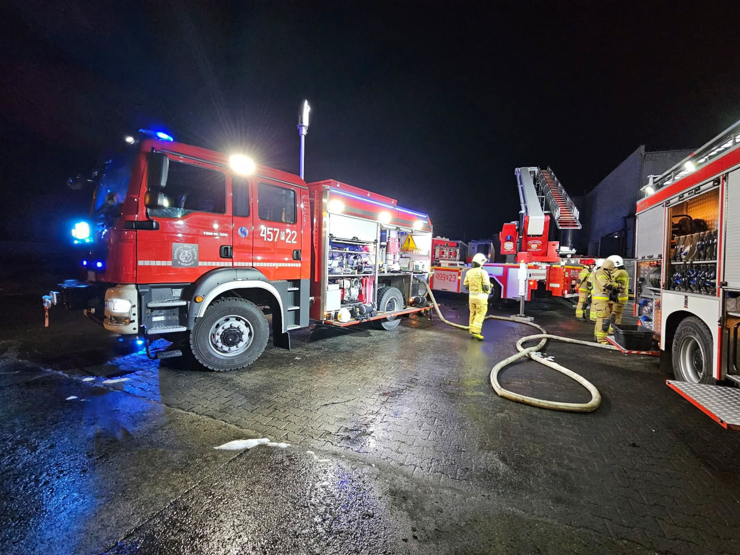 – Po przybyciu pierwszych zastępów Kierujący Działaniem Ratowniczym rozpoznał, że pali się hala przemysłowa o powierzchni około 1.000 metrów kwadratowych. Nie było osób poszkodowanych. Jedna osoba ewakuowała się z obiektu jeszcze przed przybyciem straży pożarnej – informuje asp. Dawid Kuderczak, oficer prasowy Komendanta Powiatowego PSP w Jarocinie.