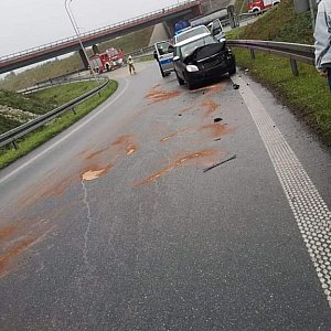 Do pierwszej stłuczki doszło na obwodnicy Jarocina. Miała ona miejsce rano. Oprócz skutków kolizji strażacy musieli też usunąć z jezdni S 11 gigantyczną plamę oleju.