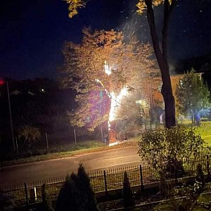 Cztery zastępy strażackie gasiły pożar drzewa. Doszło do niego w Tarcach. W nocy z poniedziałku na wtorek. Około 23:40.
