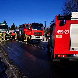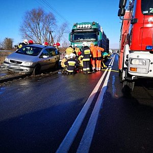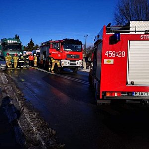 Sobota, 22 stycznia, kilka minut przed 13:00. Na drodze krajowej nr 15 w Jarocinie dochodzi do wypadku. Zderzają się dwa samochody. Osobowy i ciężarowy. Na pomoc poszkodowanym przybywają trzy zastępy straży pożarnej, dwie karetki i policjanci.