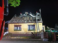 Pożar w domu przy ul. Jarocińskiej w Jaraczewie. Spłonęła piwnica budynku. Było o krok od gigantycznej tragedii. Strażacy wynieśli butlę z gazem. Jedna osoba ucierpiała.